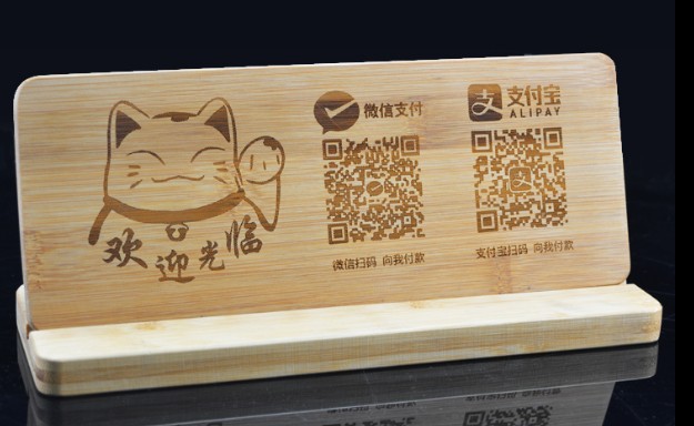 激光雕刻機(jī)是無接觸加工,不會對竹木材料造成損壞擠壓;雕刻精度高、速度快,雕刻出的圖面光滑平整;識別度高。激光雕刻的收錢碼獨(dú)特新穎,可提升店面形象,給顧客留下深刻印象,起到一定的宣傳作用。