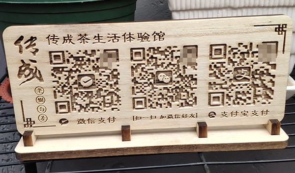 紙質(zhì)的收錢碼確實(shí)存在風(fēng)險,讓商家頭疼。神繪激光告訴你一個好方法,用激光雕刻的收錢碼。使用激光技術(shù)在竹木材料上標(biāo)刻二維碼,與紙質(zhì)效果一樣,只要在電腦軟件里設(shè)計好圖形,激光雕刻機(jī)就會按設(shè)計好的路徑進(jìn)行雕刻。雕刻好的二維碼收錢碼手機(jī)掃描無障礙,付款輕松搞定。不法分子不再有可趁之機(jī),商家到帳更有保障。