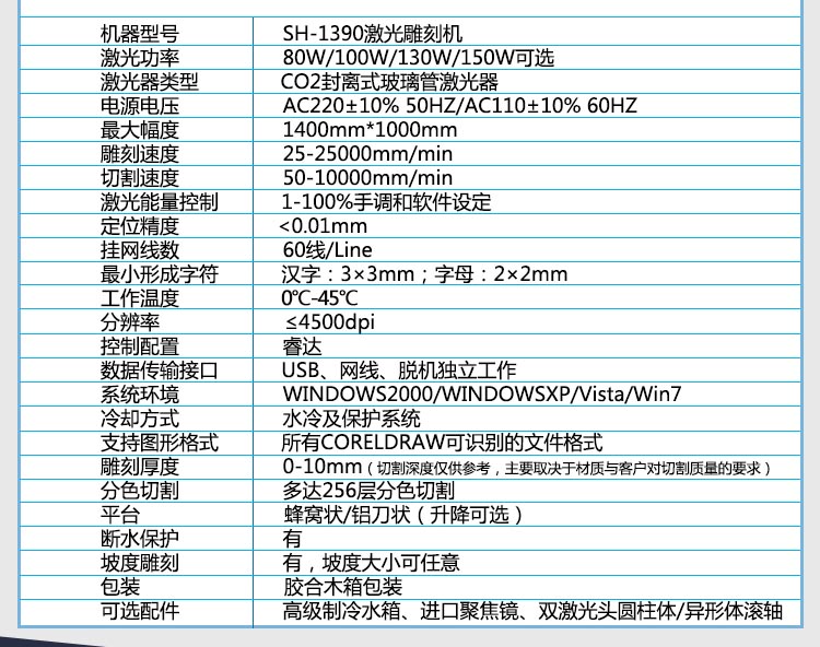 電子面板激光切割機(jī)參數(shù):