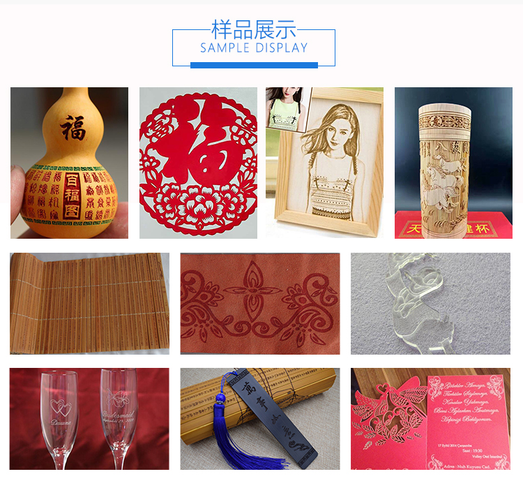 (2)適用于小面積的工藝品加工,在雙色板、木板、竹片、有機玻璃板、布匹上刻各種各樣的圖形和文字,圖文并茂,形象逼真。