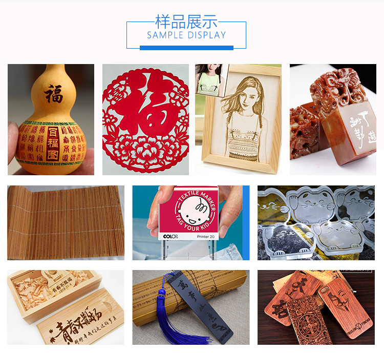 (2)適用于小面積的工藝品加工,在雙色板、木板、竹片、有機玻璃、布匹上刻各種各樣的圖形和文字,圖文并茂,形象逼真。