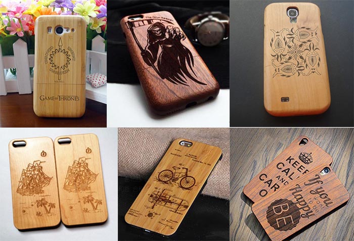 各種木制手機(jī)殼激光雕刻樣品圖