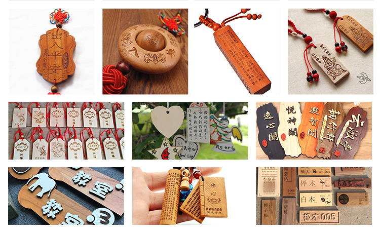 木吊牌、掛件激光雕刻能提高雕刻的效率,使被雕刻處的表面光滑、圓潤(rùn),迅速地降低被雕刻的非金屬材料的溫度,減少被雕刻物的形變和內(nèi)應(yīng)力;可廣泛地用于對(duì)各種非金屬材料進(jìn)行精細(xì)雕刻的領(lǐng)域。